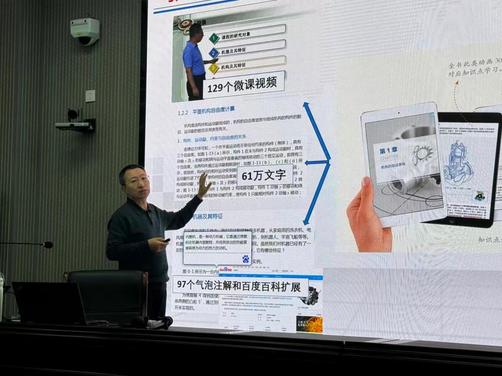 本次培训会特别邀请到两位业内权威专家进行专题分享。北京航空航天大学教授、博士生导师郭卫东作为国家级教学名师,长期深耕教学资源建设领域,拥有丰富的实践经验与深厚的理论积淀。培训中,他围绕数字教材的创新建设与应用展开深入讲解,结合自身编写国内首部《机械原理》云教材、创建首个“机械原理”云班课的实践案例,详细阐述了“云教材+云班课”混合式教学模式的构建逻辑、实施路径与应用成效,为在场教师提供了可借鉴、可操作的宝贵经验。